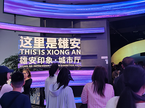 之后我們到達(dá)了雄安印象展館,展館中展示著雄安新區(qū)的規(guī)劃設(shè)想,穿越“時(shí)光隧道”,沉浸式影像讓大家身臨其境,感受到了新區(qū)從無到有的變化。